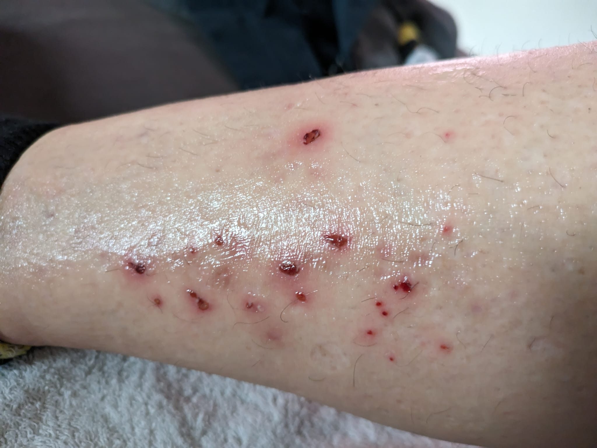 Es ist kaum zu glauben, dass die offenen, schmerzenden und auch entzündeten Stellen an beiden Beinen bis hoch zum Oberschenkel, über den kompletten Körper und Armen verteilt waren und nun verheilt waren.